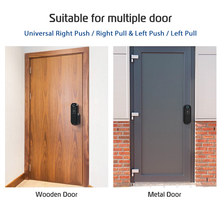 | 5 Opciones de apertura | Tuya app+ Huella + contraseña + llave + tarjeta | Puertas de espesor | 30mm a 90mm |